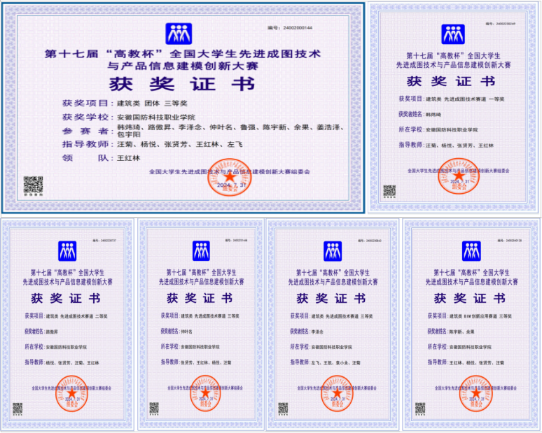 参赛学生参加建筑类子赛项,勇夺先进成图赛项一等奖1项、二等奖1项、三等奖2项,BIM创新应用赛道三等奖1项。城市建设学院学院汪菊、杨悦、张贤芳、王红林、左飞5位老师荣获优秀指导教师三等奖,刷新了学校在该项竞赛中的获奖记录。