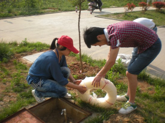 4月26号,学院团委组织青年志愿者协会成员于上午8:00开始在院6、7、8栋宿舍楼旁边进行了一次呵护心绿的浇灌活动。
