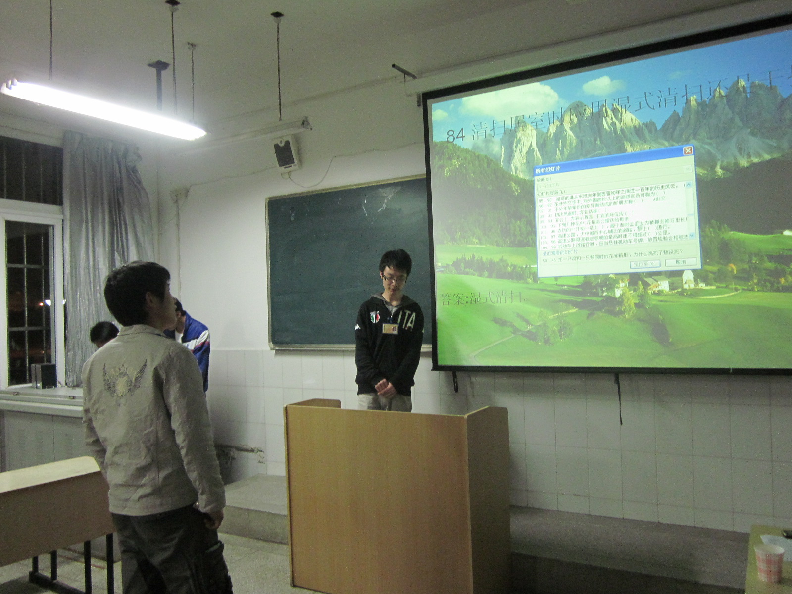 活动方式有主观题回答和客观题抢答等,内容包含安全知识、校纪校规等方面,经过激烈的竞争,共评出徐强等三名同学获得优胜奖。