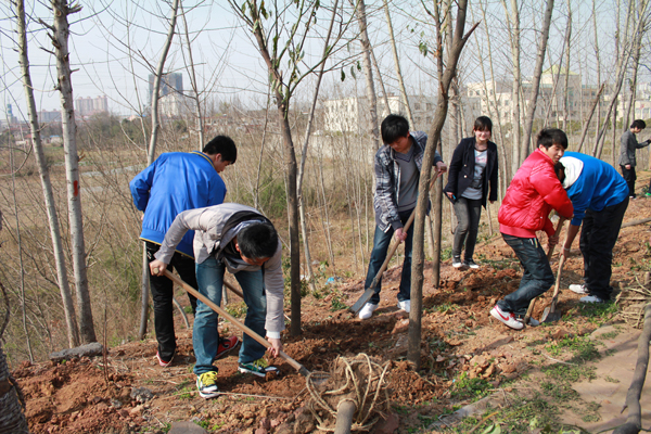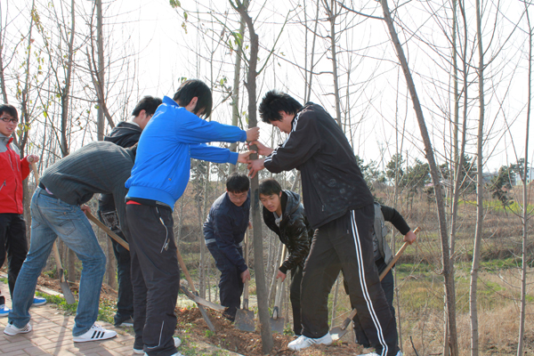 3月25日,院团委组织机械工程系和管理工程系100多名学生到市里参加了义务植树活动。