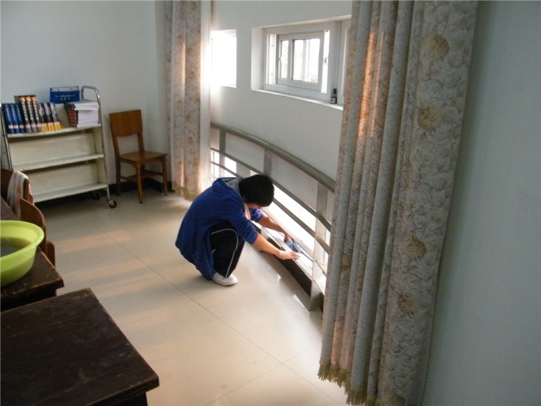 经过一天的紧张劳动,报告厅、校史陈列馆、接待室、军事陈列馆、阅览室和自修室等多个室内场所被同学们打扫的焕然一新。