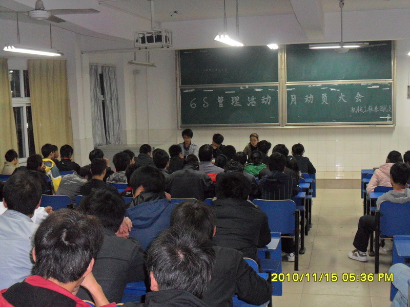 为进一步加强系学生宿舍“6S管理”工作,促进学生养成良好的学习和生活习惯,营造勤奋向上、积极进取的“迎评促建”的氛围,机械工程系将于11月18日---12月18举行为期一个月的“6S管理活动月”,动员大会于2010年11月15日下午在2#105召开,系属各班班长、生活委员和寝室长参加了会议,会议由团总支书记陈思老师主持。