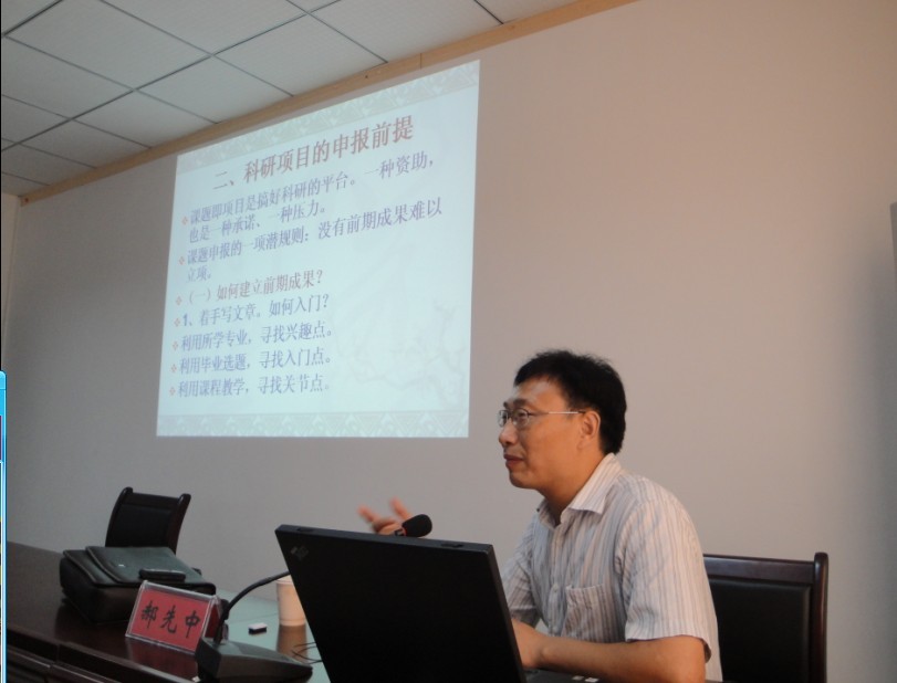 6月24日下午,行政楼第一会议室时而鸦雀无声,时而笑声朗朗,这是思政部为提升教师的教科研工作能力,帮助教师掌握科研项目选题与申报技巧而邀请皖西学院政法系郝先中教授“科研项目申报和论文写作指导”讲座现场,郝教授精彩报告和幽默的语言吸引了在场的每一位听众。