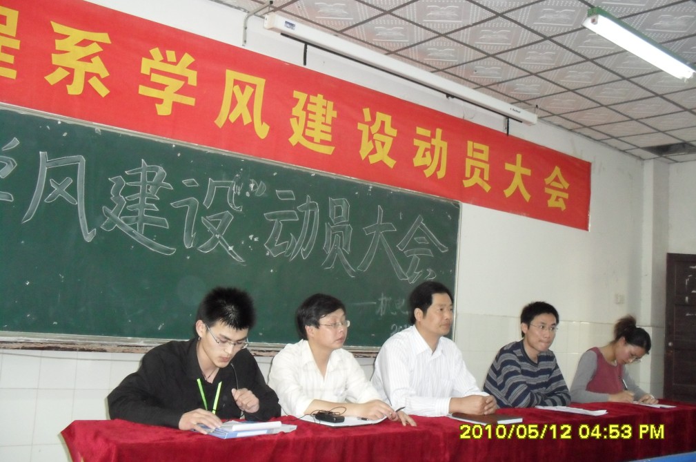5月12日下午,机电工程系2010年度学风建设动员大会在1号教学楼111教室举行。系党总支书记孙良平、副主任李翔、主任辅导员罗威、辅导员史媛芳及系属各班班主任出席了会议,大会由罗威主持。