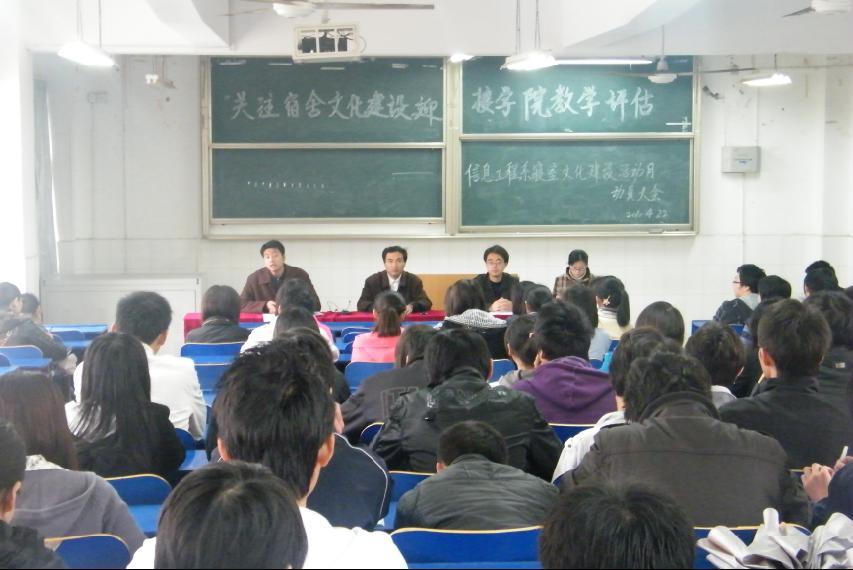 4月22日下午,信息工程系在2号教学楼105室召开“宿舍文明活动月”动员大会,该系主任辅导员王文堂、团总支书记张伟业、辅导员刘严、杨旄袤及全系学生党员、学生干部、寝室长参加了会议。