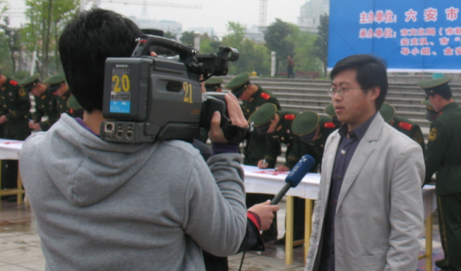 活动中,我院学生积极参与大型签名、发放宣传单页等活动。我院学生职望在会上代表青年学生发言,并接受六安电视台及相关媒体的采访。