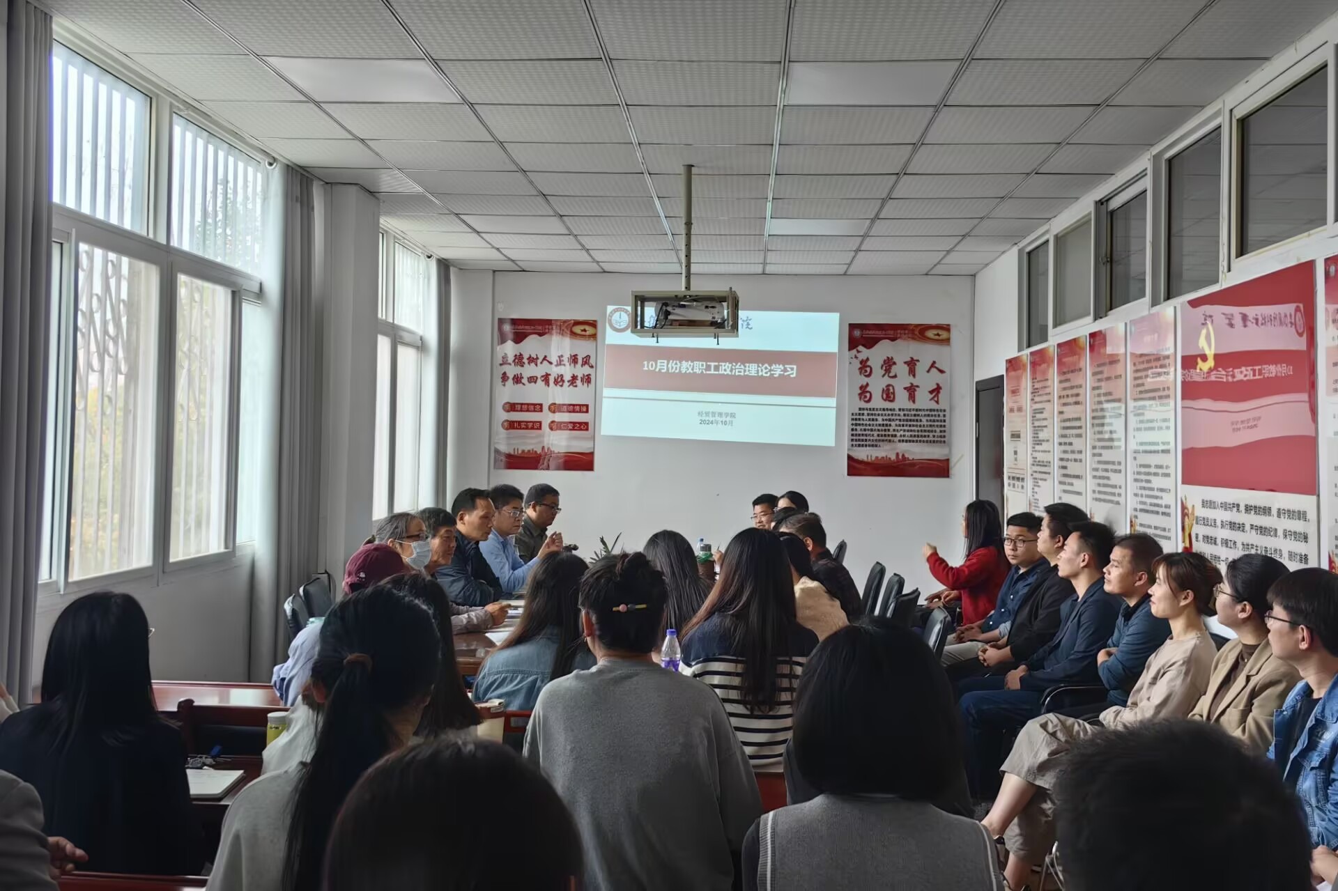 本网讯(经贸管理学院 付玉梅)根据学校党委工作部署及学院工作安排,10月16日,学院开展师德师风专题政治理论学习活动,活动由院党总支书记刘峰主持,全院教职工参会。