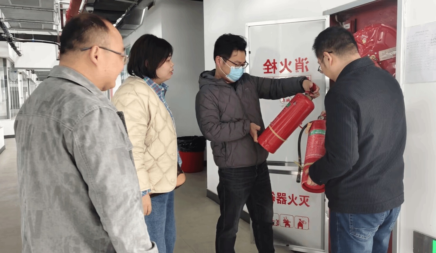 在此次检查行动中,党员教师们分组对实训室各楼层的灭火器、消防栓、应急照明灯以及疏散指示标志等消防器材展开了地毯式排查。他们逐一查看灭火器的压力是否处于正常范围,检查消防栓接口有无老化或渗漏现象,测试应急照明系统能否正常工作。