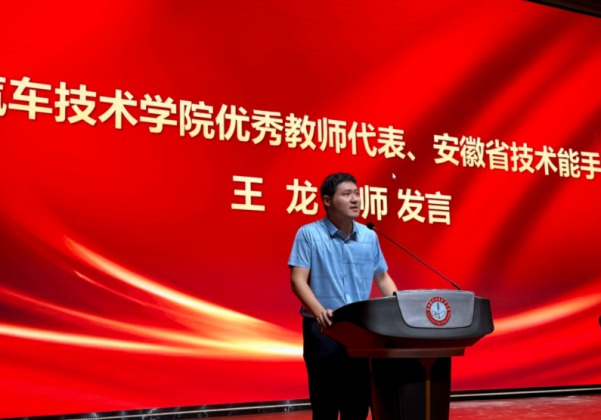 教师代表王龙老师在发言中表达了对新生的热烈欢迎,并分享了自己在教学中的经验和感悟。他鼓励同学们在大学期间要保持积极的学习态度,培养自主学习能力,充分利用学校的优质资源,努力提升专业技能,弘扬工匠精神,积极投身于汽车产业的发展浪潮中。