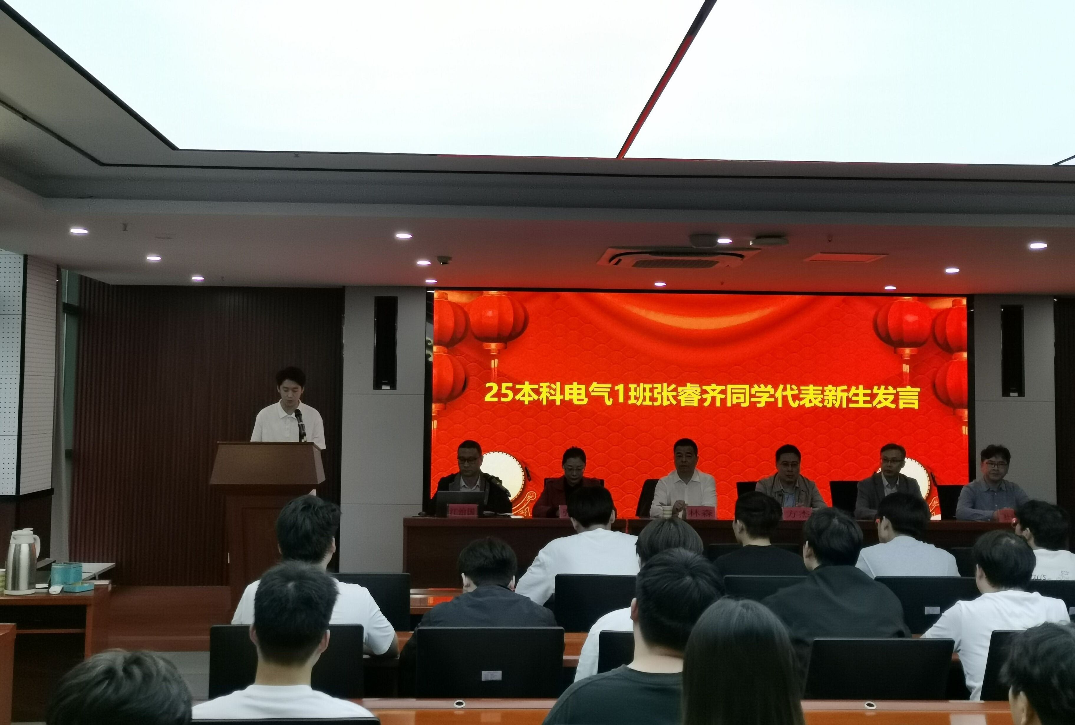 25本科电气1班张睿奇同学代表2025级新生发言,张睿奇同学表示,将立足新的起点,开启人生的崭新篇章,新的起点意味着新的责任与使命,同学们将珍惜这来之不易的学习机会,在学好专业知识的同时,积极参与校园文化活动和社会实践,全面提升自身综合素质,为实现自己的人生目标而奋斗。