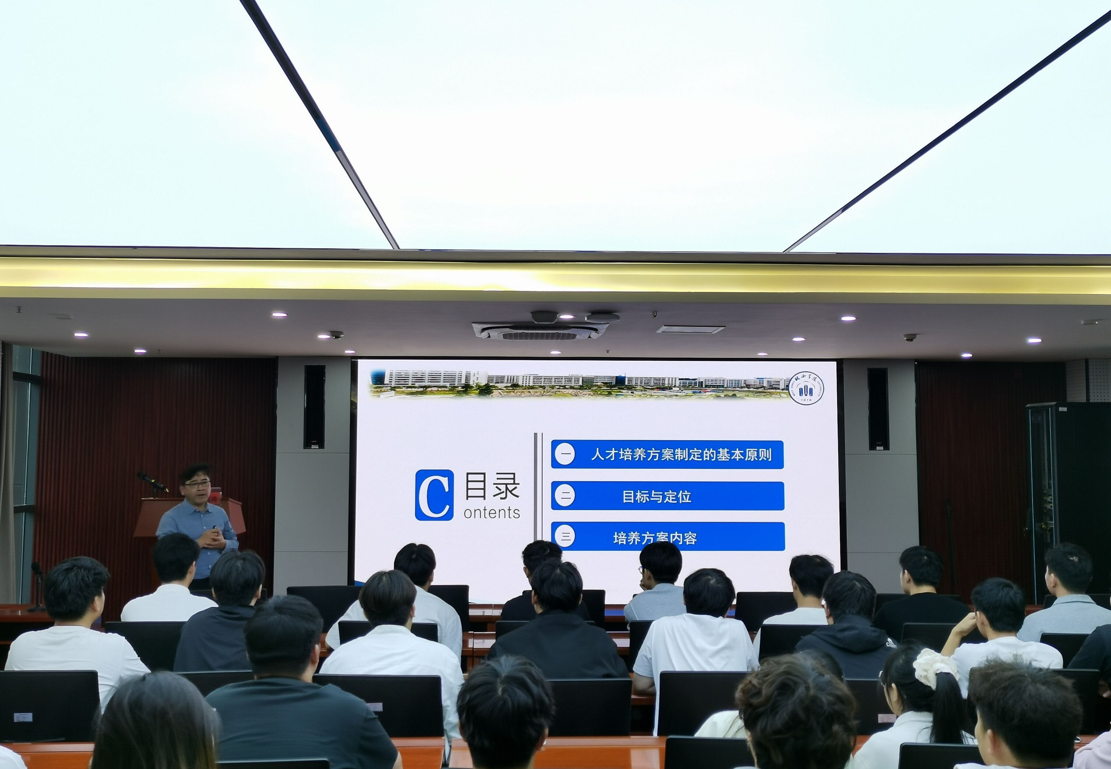 林森在讲话中围绕“硬核专业、双重福利、特别的学生、几点建议”四个关键词,向同学们提出几点建议:一是期望各位同学要做好人生目标规划,通过不断学习和积累,实现自己的人生价值;二是期望同学们遵守校纪校规和法律法规,脚踏实地,谦虚礼让,善作善成;三是期望同学们不忘初心,牢记使命,向着理想和目标奋力前行。