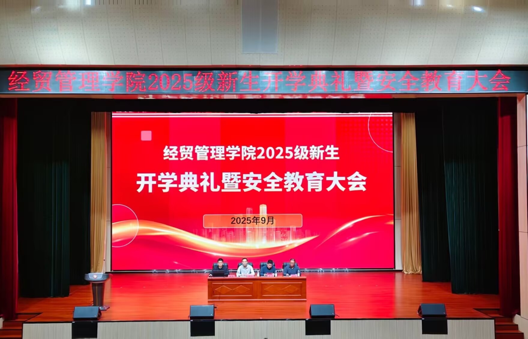 本网讯(经贸管理学院 张洋洋)9月25日晚,经贸管理学院2025级新生开学典礼暨安全教育大会在产教融合中心多媒体报告厅举行。学院领导刘峰、杨力、杨学分,全体辅导员及2025级新生参加活动。大会分两阶段有序推进。