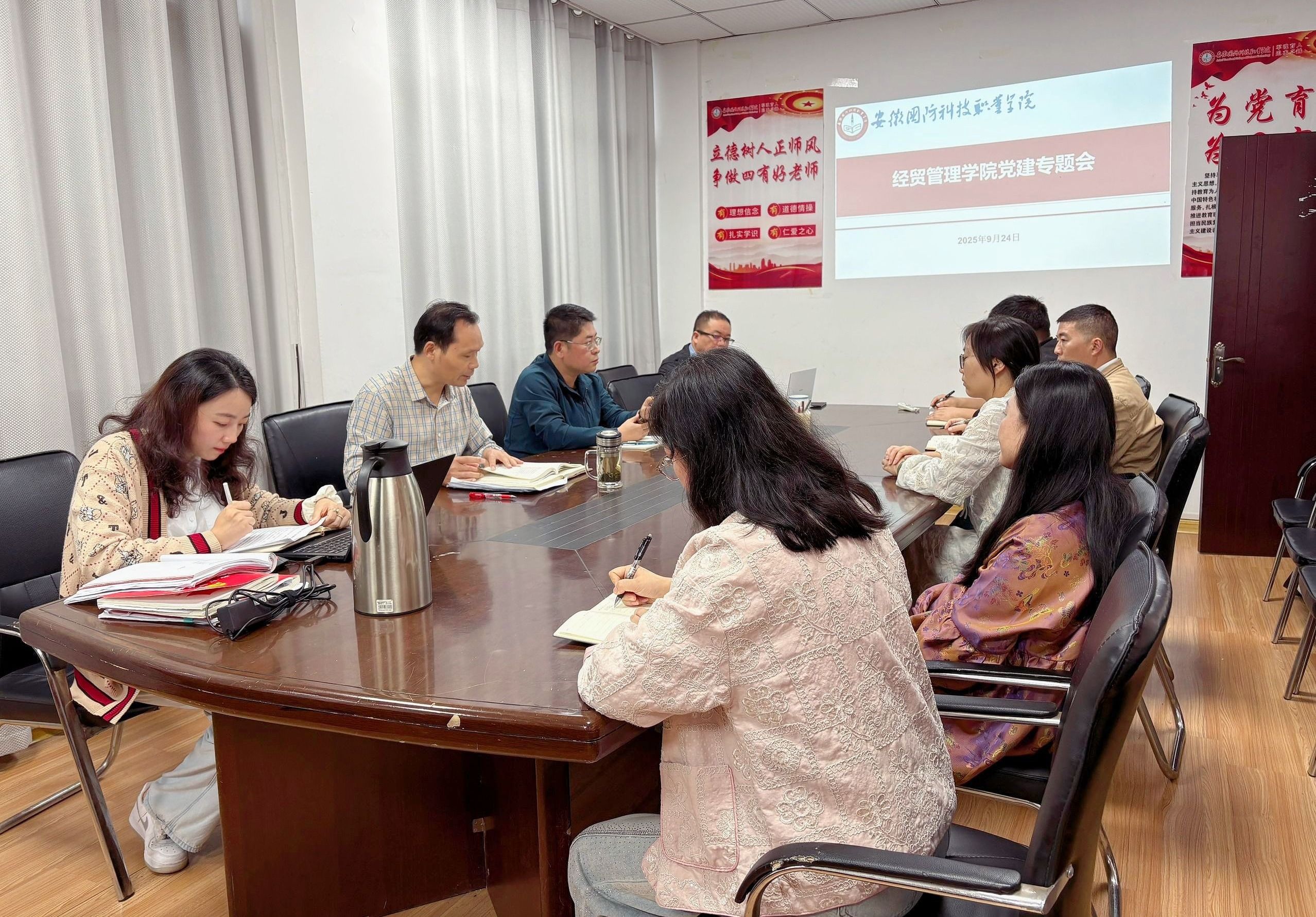 本网讯(经贸管理学院 黄惠)为深入学习贯彻习近平总书记关于党的建设的重要思想,全面落实新时代党的建设总要求,进一步提升学院党建工作质量,9月24日下午,经贸管理学院党总支在知行楼202会议室召开党总支委员会(扩大)会议暨党的建设专题会议。学院党总支委员、工商管理党支部委员、交通运输党支部委员参加会议,会议由党总支书记刘峰主持。