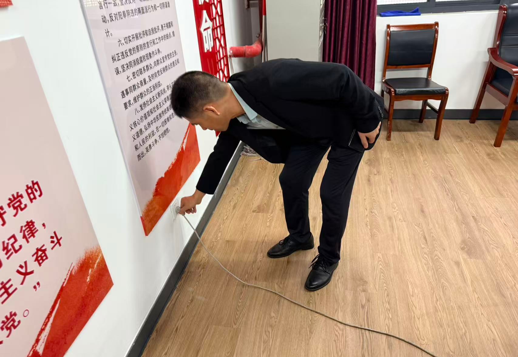 在办公区域以及学校接待中心一楼检查中,检查组重点查看了消防器材配备与完好情况、电气线路敷设规范性、门窗锁具安全性能及文件资料保密管理措施。对发现的个别办公室插线板使用不规范、轻微堆积杂物等问题提出了整改意见,并要求立即整改;为确保接待中心一楼安全方面,抽查了空调、热水器、插座等电器设备的运行状况。