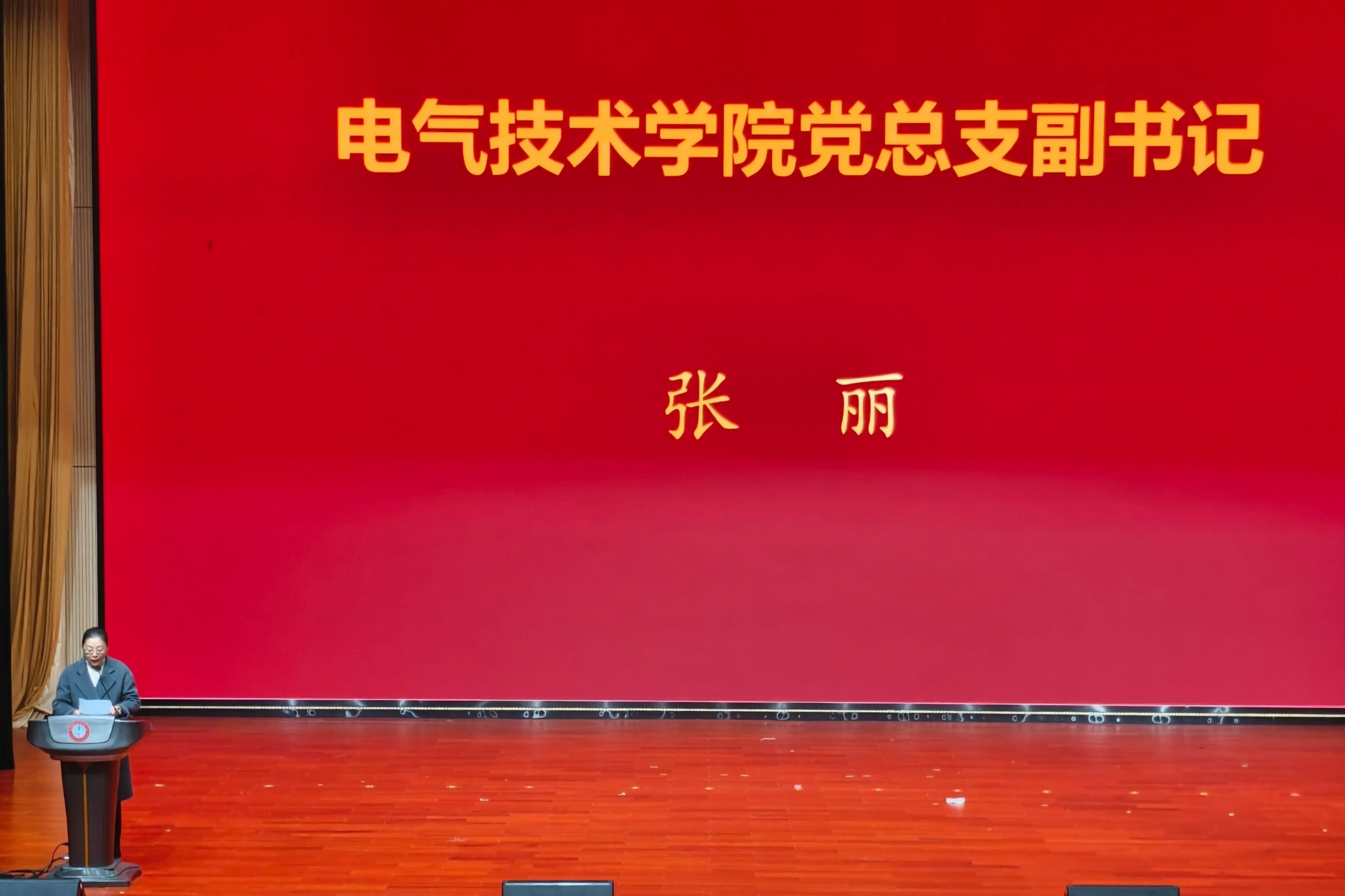 在承前启后的重要时刻,学院党总支副书记张丽为大会致辞。她深情回顾了本届科技文化节的精彩历程,充分肯定了同学们展现出的专业才华与精神风貌,在致辞中用“欣慰、振奋、期待”三个关键词,深情概括了参会感受。首先欣慰于同学们的茁壮成长与全面进步,同时振奋于“党建带团建”引领下的蓬勃生机,展望未来,她向全体学子表达了深切期待,并提出三点希望:一要坚定理想信念,筑牢信仰之基,做有家国情怀的电气人;二要坚持精技强能,锤炼立身之本,发扬工匠精神,勇于创新创造;三要坚守务实品格,走好奋斗之路,在实践中增长才干,在奉献中实现价值。她勉励全体学子坚定理想信念、精进专业技能、锤炼高尚品格,将个人成长融入国家发展大局,在未来的人生道路上继续“电”亮梦想,勇担时代使命。