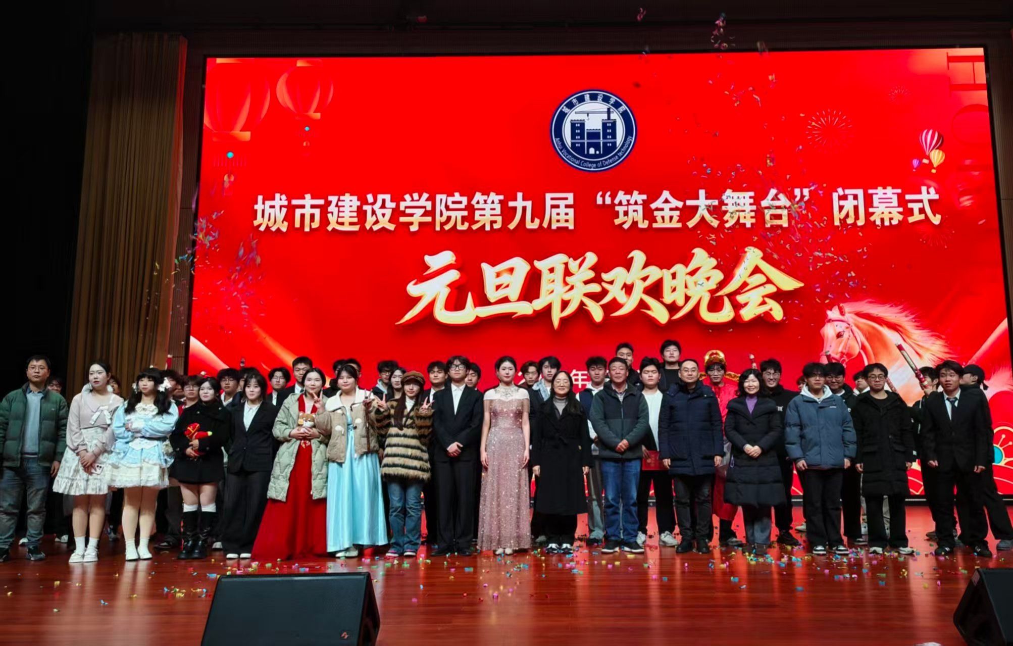 本网讯(城市建设学院 袁野)12月29日晚,城市建设学院第九届“筑金大舞台”闭幕式暨元旦联欢晚会在产教报告厅隆重举行。学院班子成员、各教研室教师代表、协会指导老师、专兼职辅导员以及24、25级学生代表欢聚一堂,共话成果、喜迎元旦。