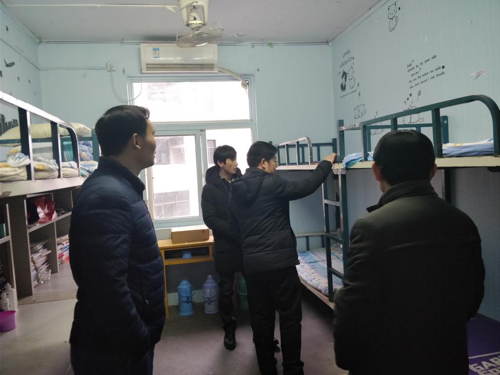 本网讯(经贸管理学院 占润润)为做好“两会”期间和开学初学生安全稳定工作,了解学生返校与开学的第一手资料,督促学生做好新学期宿舍管理工作,3月8日傍晚,经贸管理学院领导对本院宿舍进行了走访和检查,本次检查由杨力院长带队,党总支副书记刘峰、辅导员占润润、中航国铁学工部主任胡晏平一起参与了检查。