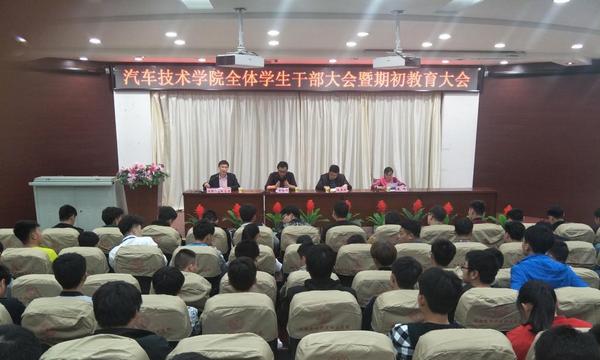 本网讯(汽车技术学院 杨志清)为学习贯彻党的十九大精神,推动“立德树人”工作在学生管理层面的持续推进,传达部署本学期学生管理和德育工作计划,提高学生干部的责任意识、自觉意识和服务意识,3月28日晚,汽车技术学院在图书馆报告厅召开全体学生干部大会暨期初教育大会。学院党总支副书记余桂刚,辅导员戴柳、朱其阳出席会议,学院全体学生干部参加大会。会议由杨志清主持。