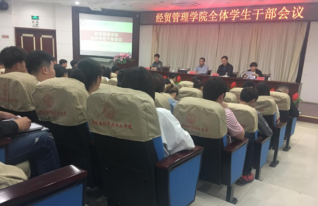 本网讯(经贸管理学院 许凤麟)为进一步提升学生干部能力,推动各项学生工作开展,4月2日晚,学院在图书馆报告厅召开全体学生干部会议,院党总支书记杜先扬,辅导员占润润、许凤麟及全体学生干部参会,会议由院党总支副书记刘峰主持。