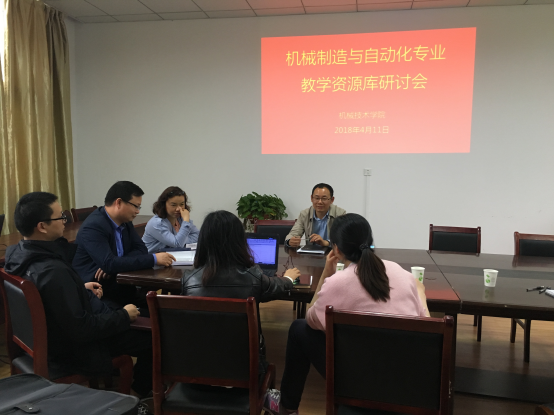 本网讯 4月11日,机械技术学院在120会议室召开了专业教学资源库建设研讨会。会议由机械技术学院副院长郭利主持,华科易汇李经理一行4人、专业带头人、课程资源建设负责人参加了会议。