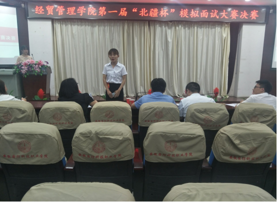 本网讯(经贸管理学院 付玉梅)为进一步促进大学生对自我和职业的认知,掌握面试及求职择业的方法与技巧,切实做好学生顶岗实习的前期准备工作,经贸管理学院于6月10日至13日举办了第一届“北疆杯”模拟面试大赛。