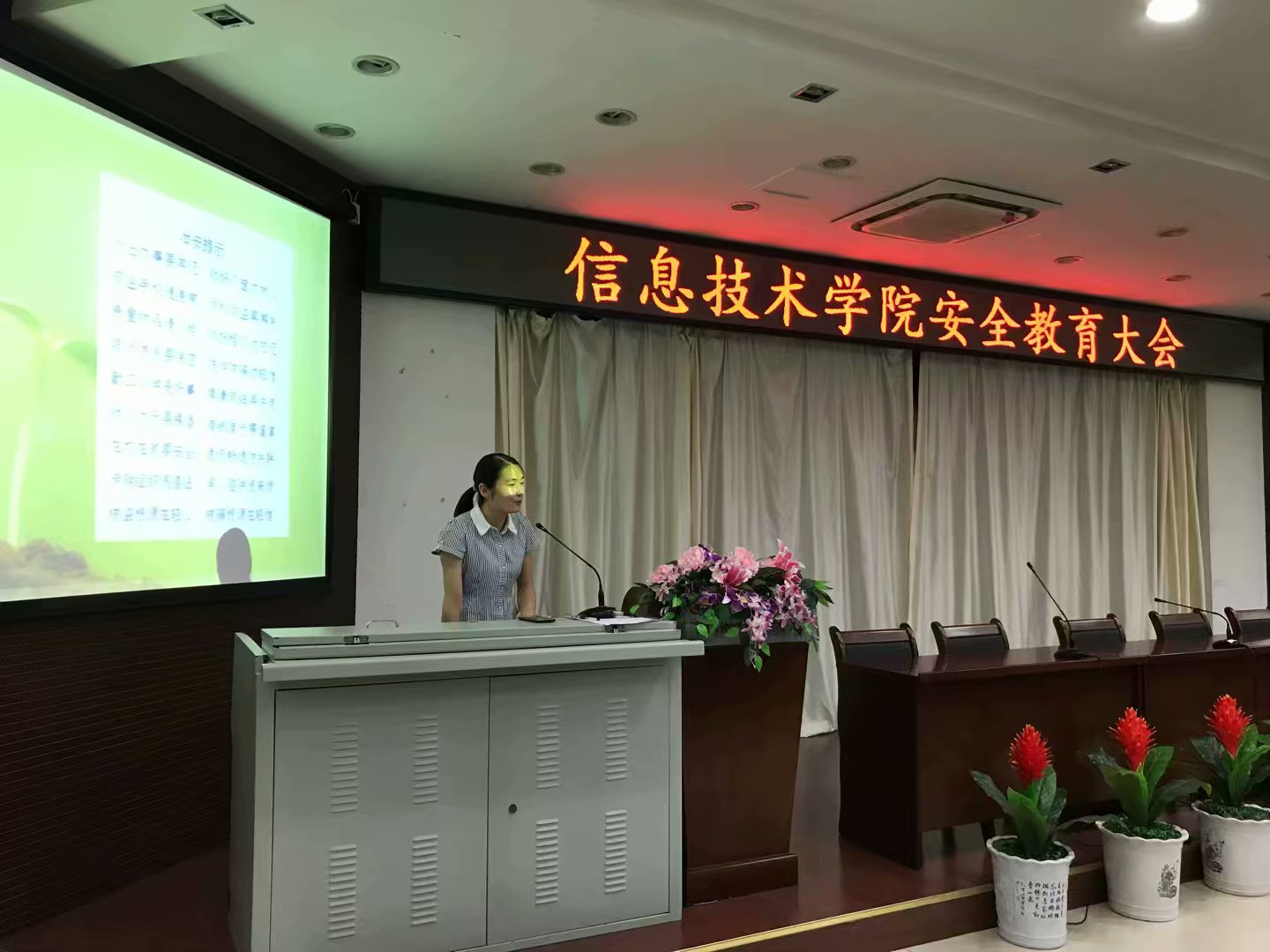 本网讯(信息技术学院 马士君)为进一步增强学生安全意识,提高自我保护能力,构筑和谐安稳美好的校园环境,6月21日晚,信息技术学院在图书馆报告厅召开16级、17级学生安全教育大会。会议由院党总支副书记杨庆颖主持。