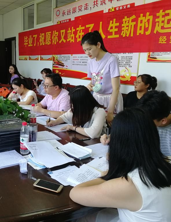 以生为本、热情服务。结合学院工作安排,院团总支制作了条幅、展板和领取毕业证书流程海报,为毕业生们营造良好氛围。在为期两天的手续办理工作中,学院在会议室集中设置毕业手续办理点,为毕业生提供“一站式”服务。全体班主任、辅导员战高温、冒酷暑,始终抱着认真负责的工作态度,为前来办理手续的毕业生们热忱服务,认真、仔细、有序地为毕业生办理相关手续,保证毕业生们在一个温馨、和谐、友爱的氛围中度过大学生涯最后时光。