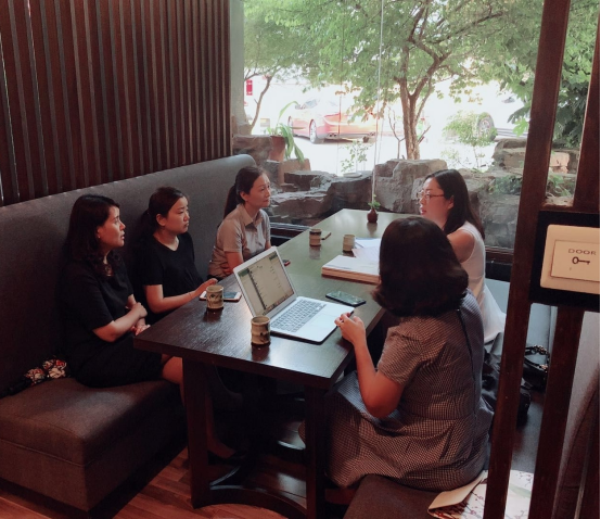 本网讯(经贸管理学院 杨懿)7月20日上午,beat365酒店管理专业现代学徒制试点项目负责人司首婧一行在胥城大厦与书香酒店集团党委书记钱恩妮、书香酒店集团人力资源总监唐旭华和书香酒店集团人事经理李娟就2018年下半年校企现代学徒制任务的落实与执行进行了深度研讨。