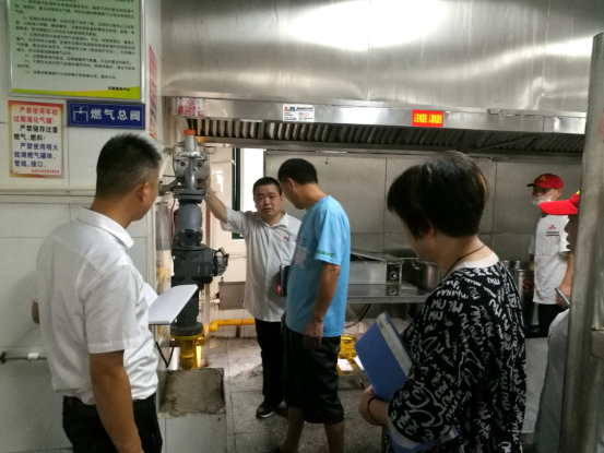 吴伟一行对食堂原料仓库、加工间、面点间、大灶间、清洗间、餐具消毒间的安全卫生状况进行了查看,并就原料质量、原料采购,索证索票、食品留样,食品从业人员健康证、学生食堂管理制度等进行了逐一细致检查。从食材的新鲜程度到饭菜的烹制过程,从工作人员的个人卫生到操作过程的卫生状况,检查人员耐心检查,详细记录。检查现场,吴伟就在检查中发现的相关细节问题向食堂经营负责人进行了问询,并即刻提出了整改要求与建议。