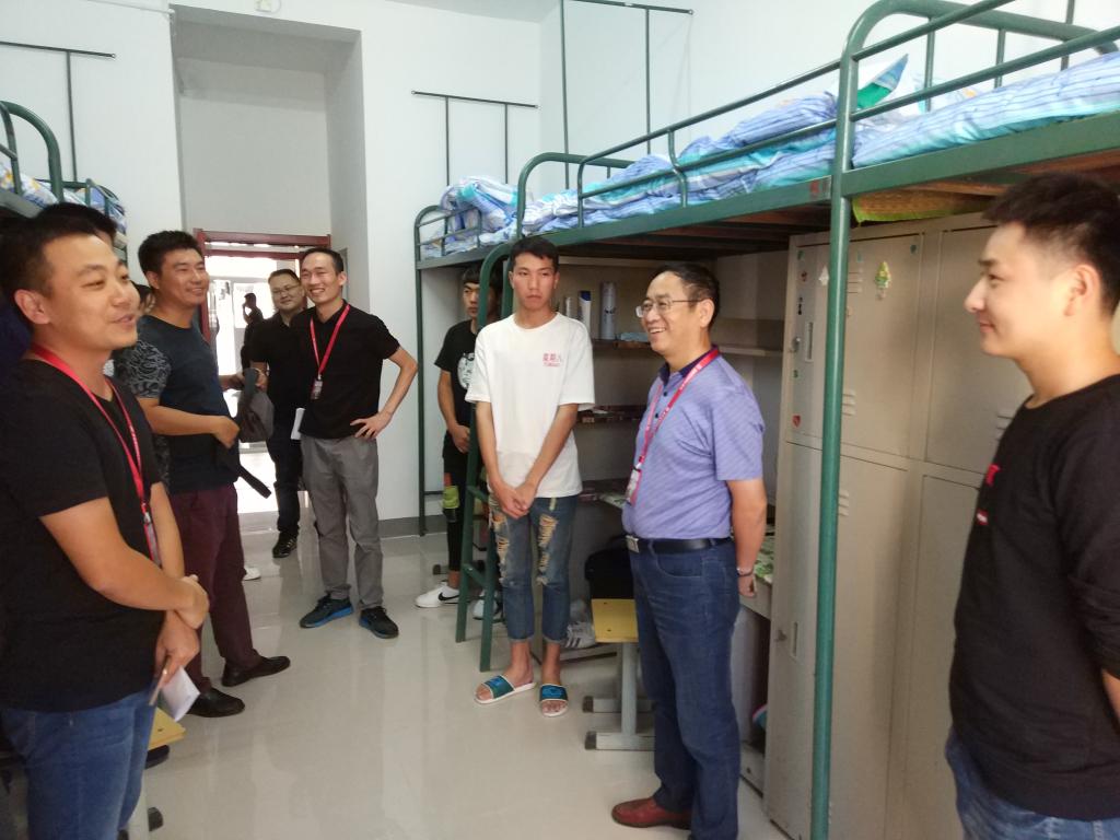 本网讯(信息技术学院 杨庆颖)2018年9月8日,信息技术学院迎来了256名2018级新同学。为了解新生来校的生活和适应情况,让广大新同学深切感受到学院领导和老师对他们的关心,9月8日下午6点,信息技术学院党总支书记孙武、副院长沙有闯、副书记杨庆颖和2018级新生辅导员、班主任,深入新生宿舍,亲切看望2018级新生。在走访7栋、9栋学生宿舍时,各位领导和老师嘱咐各位同学注意安全,希望他们尽快适应新环境投入到大学的学习和生活。还与新生的家长进行了亲切交谈,希望家长们配合和支持学院的工作,家校合作,使学生健康成长。