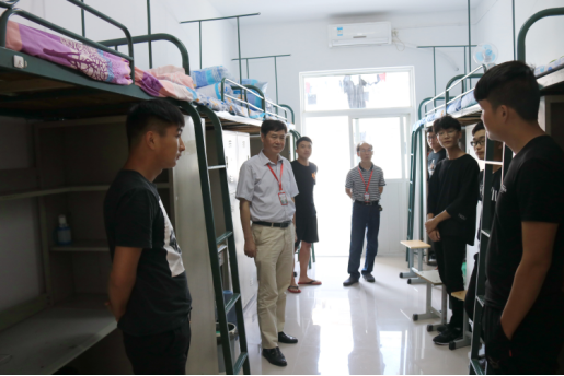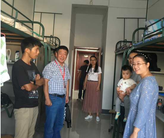 本网讯(机械技术学院张艳华)9月8日傍晚,在迎新工作接近接近尾声之际,校党委书记余嗣元带领机械技术学院班子成员和18级辅导员、班主任集体深入机械技术学院新生宿舍看望、走访新生,了解新生入校生活和思想状况。