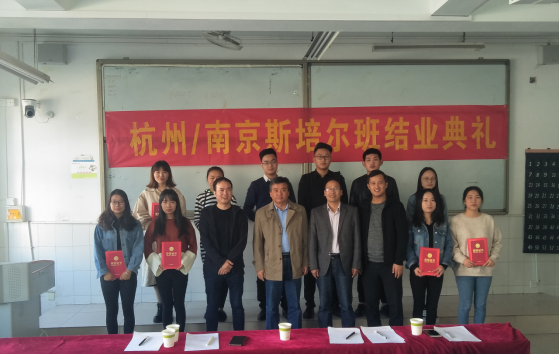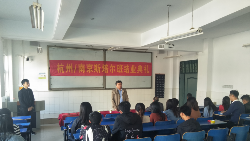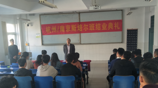 本网讯 10月28日,第一届杭州/南京斯培尔班结业典礼在beat365二号教学楼105教室隆重举行。南京斯培尔冷暖设备有限公司总经理章发贵、杭州斯培尔公司总经理赵峰,校总务处处长余嗣俊、经贸管理学院党总支书记杜先杨出席此次典礼,典礼由beat365优秀毕业生于业报主持,共有50多位同学参加,