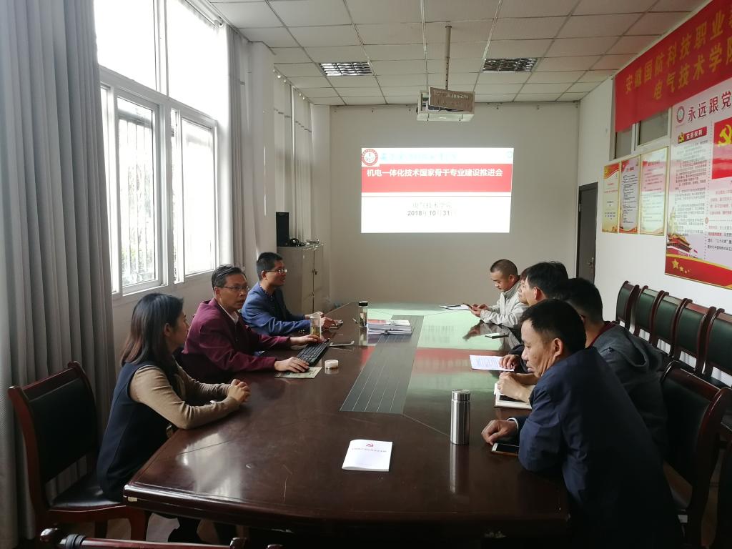 本网讯(电气技术学院 卢万银)10月31日下午16:00,电气技术学院在学院会议室召开机电一体化技术骨干专业建设推进会,会议由电气技术学院院长、项目负责人李翔主持,各子项目负责人、新聘机电一体化技术专业带头人和实训中心主任参会。