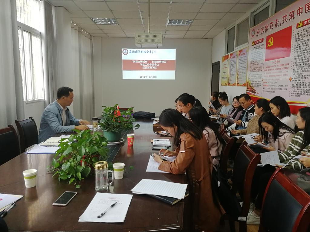 一是积极宣传,认真学习。学院及时召开工作专题会议,向教职工、班主任传达学校创建文明校园专题会议精神,学习了《六安市创建全国文明城市宣传册》《学校创建文明校园实施方案》,学院要求全体教职工、班主任积极动员学生参与,以进一步扩大创建文明校园的知晓率与参与率。