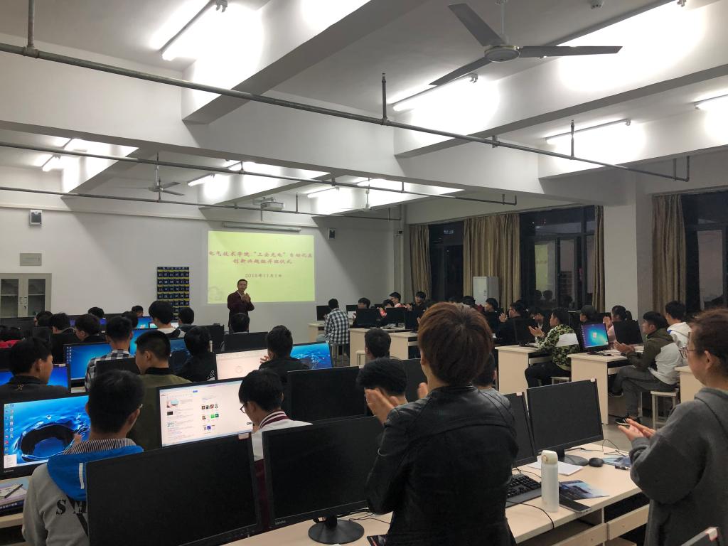 本网讯(电气技术学院 金玉好)为进一步加快推进地方技能型高水平大学建设,深化学院教育教学改革,切实加强技能人才的培养,促进学生实际操作技能的提高,丰富学生的业余文化生活,经前期学生报名班主任审核,中期理论考试筛选,电气技术学院于2018年11月1日晚19:00在综合楼602举行了“三安光电”自动化类创新兴趣小组开班仪式。会上由电气与自控设计所所长任启宏副教授主持,由各项目指导老师分别介绍了自己所带项目的培训内容以及未来发展方向。