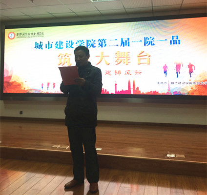 本网讯(城市建设学院 张凤)为深入贯彻落实党的十九大精神,推进学校“一高一优”建设工作,加强城市建设学院“一院一品”品牌文化建设,11月9日下午,“活力城建,建铸风采”——城市建设学院第二届一院一品“筑金大舞台”在校综合楼十二楼会议室隆重开幕。校党委副书记、纪委书记朱德明、城市建设学院院长张显国、城市建设学院副书记叶启衡、团总支书记张凤出席会议,学院全体教职工以及全院学生代表参加了此次会议。