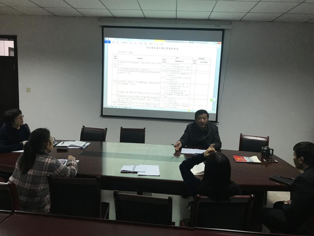 会上余桂刚副书记带领大家再次学习(校党〔2018〕19)《中共beat365唯一官方网站委员会基层党组织标准化建设考核验收办法》,并分条分项就考核办法进行了解读,对照学院标准化建设工作实际情况进行了仔细分析,就目前学院党总支基层党组织标准化建设工作向大家做了具体汇报,最后对两个支部的基层党组织标准化建设工作进行了指导,并要求按照文件内容上交材料,进行考核验收。