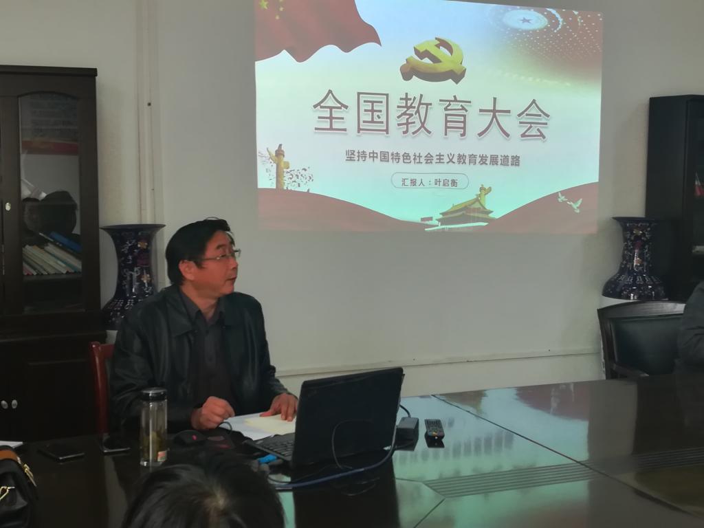 党支部副书记叶启衡带领全院教师学习了习近平总书记在全国教育大会上的讲话内容,要求教师把立德树人融入思想道德教育、文化知识教育、社会实践教育各环节,学科体系、教学体系、教材体系、管理体系要围绕这个目标来设计,教师要围绕这个目标来教,学生要围绕这个目标来学。