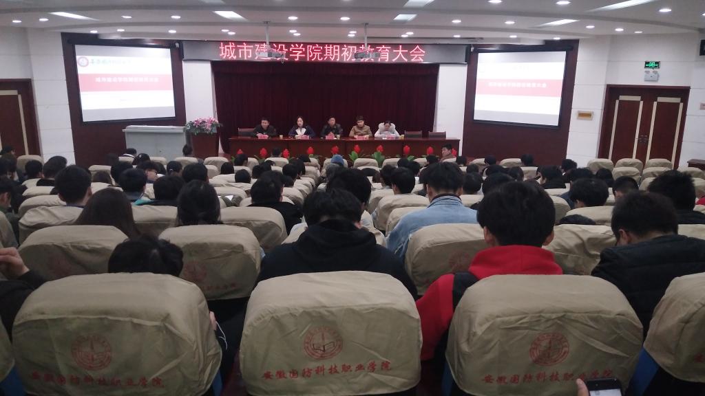 本网讯(城市建设学院 罗丞筠)3月7日晚,城市建设学院在图书馆报告厅召开了期初教育大会,城市建设学院党总支副书记叶启衡,辅导员罗丞筠、袁野、康垚,全体班主任以及团总支学生会、院属专业社团、各班级全体学生干部参加了大会,会议由院团总支书记张凤主持。