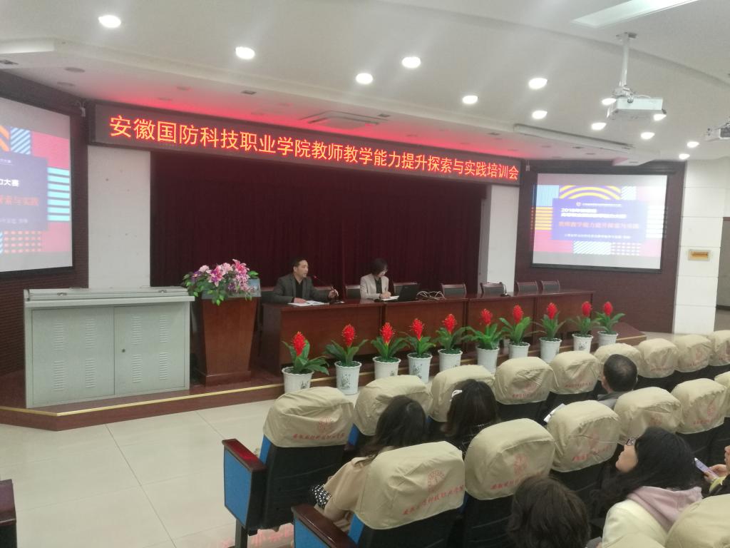 本网讯 为提高教学质量,切实加强教师教学设计、课堂教学和信息化技术应用等能力的系统培养,促进教师教学能力和水平不断提升,3月29日下午,beat365举办了教师教学能力提升探索与实践培训会,安徽省职业院校信息化教学指导专家组秘书处成员、安徽机电职业技术学院李琤老师应邀作题为“教师职业教育教学能力提升探索与实践”的讲座。各二级学院(教学部)负责人和全体教师参加了此次活动,培训会议由教务处处长王志宏主持。