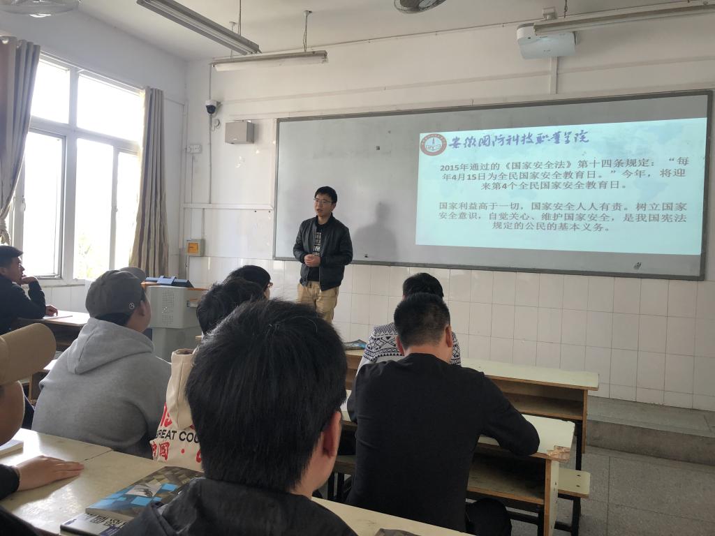 本网讯 4月15日是我国“全民国家安全教育日”,为贯彻落实习近平总书记提出的“总体国家安全观”,提高同学们维护国家安全的法律意识,将国家安全融入学生日常教育活动中,4月12日下午,城市建设学院组织各班级开展“国家安全日”教育主题班会,会议由各班主任主持,17、18级全体同学参加。