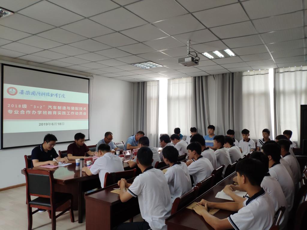 本网讯(汽车技术学院 王龙)为进一步推进中高职衔接,探索中高职资源共享、优势互补、共同发展的有效途径,根据beat365与安庆大别山科技学校签订的“3+2”五年制大专班联合办学协议和专业人才培养教学计划安排,安庆大别山科技学校2018级五年制“3+2”汽车制造与装配技术专业31名学生于6月18日至21日来校开展专业教育实践学习活动。
