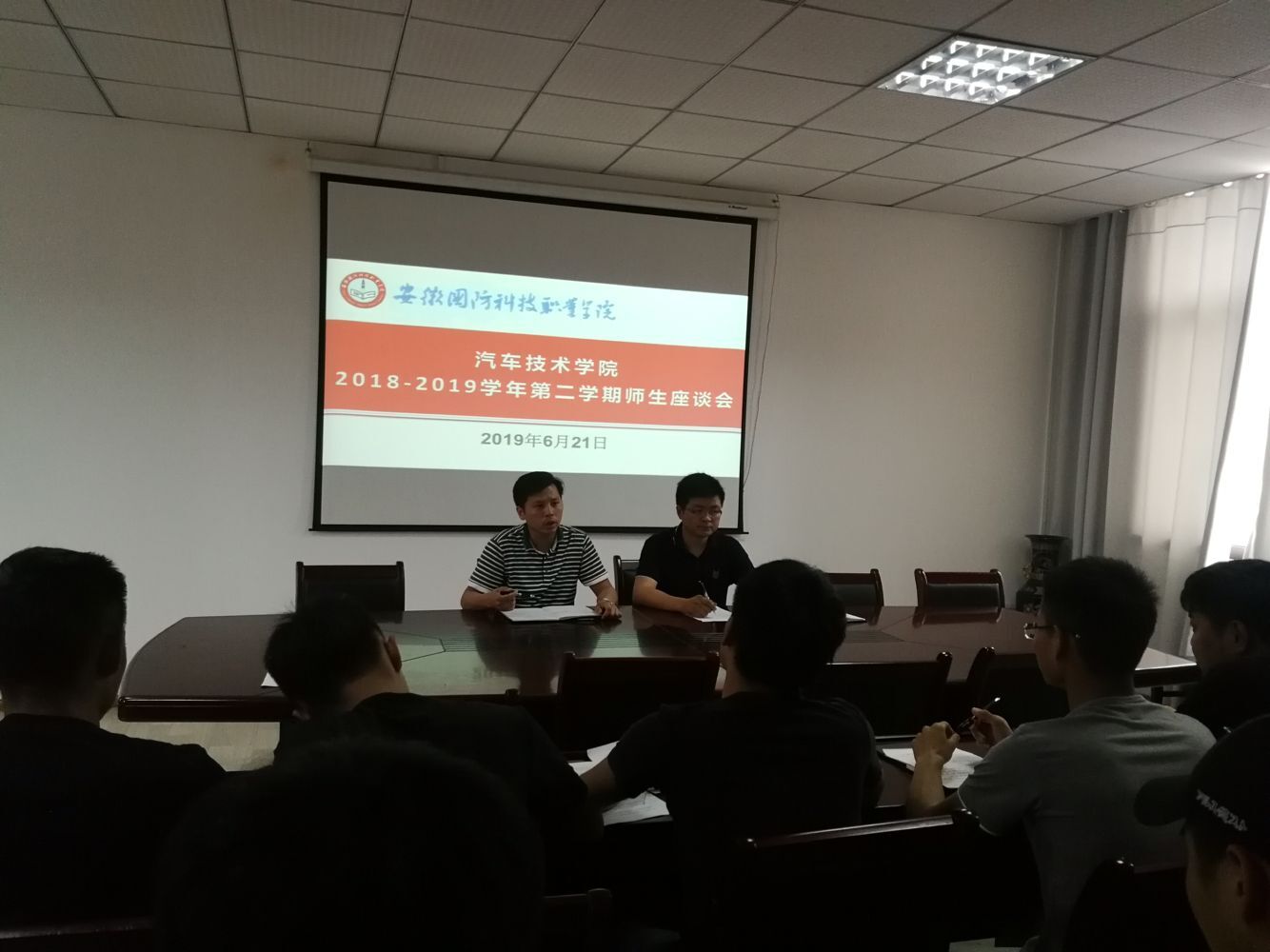本网讯 为充分了解学院实际教学状况,提升教育教学质量,培育优良学风和严谨教风,营造积极向上的教学氛围和学习氛围,汽车技术学院于2019年6月21日下午在学院会议室召开了师生座谈会。汽车技术学院副院长姜继文,团总支负责人朱其阳及17、18级各班学生代表出席了此次座谈会。会议由学院团总支负责人朱其阳主持。