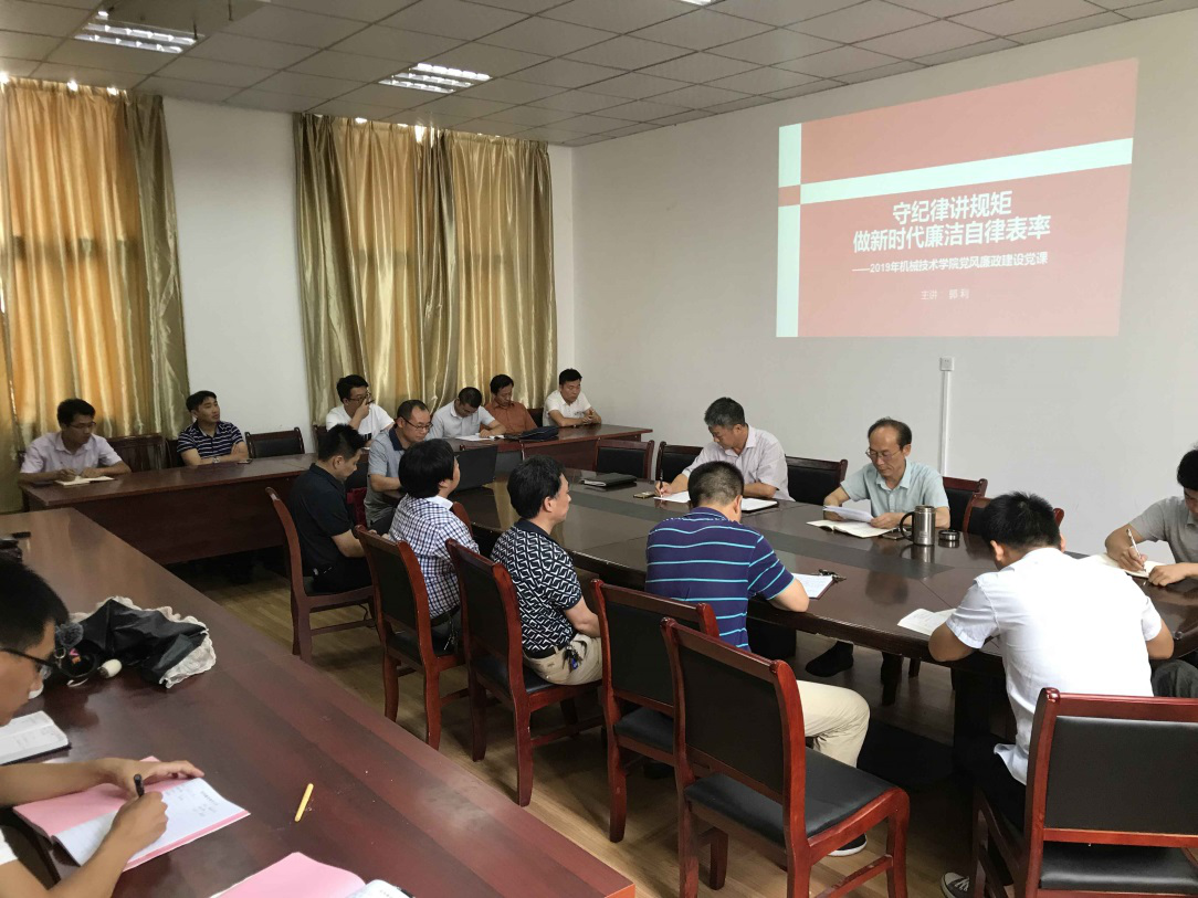 本网讯(机械技术学院 项华)为加强机械学院全体教职工政治意识、廉政意识,进一步筑牢拒腐防变的思想堤坝,6月26日下午,机械技术学院郭利副院长为全体教职工上了一堂题为《守纪律、讲规矩,做新时代廉洁自律表率》的专题党课。