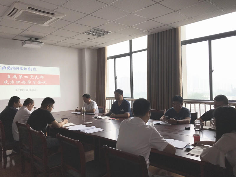本网讯(学生处 徐婷婷)6月26日上午,校直属第四党支部在综合楼1012室召开《习近平新时代中国特色社会主义思想学习纲要》集中学习会议,支部全体党员、入党积极分子及支部辐射职工参与了此次会议,直属第四党支部书记孙良平主持会议。