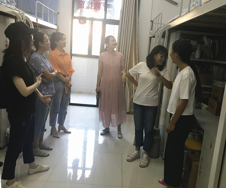 本网讯(信息技术学院 马士君)新学期伊始,为进一步加强学生宿舍安全管理,督促学生养成良好的卫生习惯,营造安全、文明、干净、卫生的宿舍生活环境,9月4日下午5:00,信息技术学院党总支书记孙武、副书记杨庆颖带领全体辅导员、班主任对本院学生宿舍进行安全卫生大检查。
