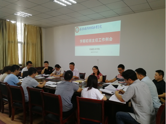 本网讯(机械技术学院张艳华) 为顺利开展新学期学生工作,促进班级管理再上新台阶,9月4日下午,机械技术学院在学院会议室召开期初班主任工作会议。会议由院党总支副书记陈思主持,院党总支书记张宗江、团总支书记袁帅、全体辅导员和班主任参加了会议。
