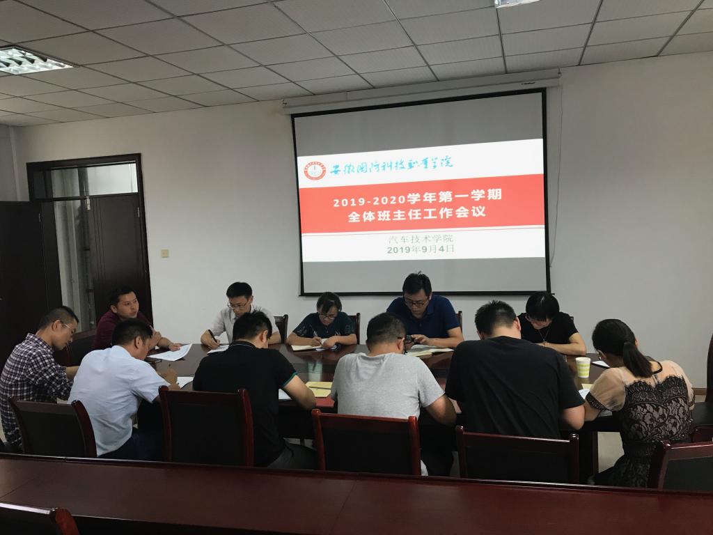 本网讯(汽车技术学院 朱其阳)为切实做好2019-2020学年第一学期学生管理工作,认真部署2019级新生开学报到工作,9月4日下午17:00,汽车技术学院在行政楼416会议室召开全体辅导员班主任工作会议。学院党总支副书记余桂刚、副院长姜继文、全体辅导员班主任参加会议,会议由余桂刚主持。