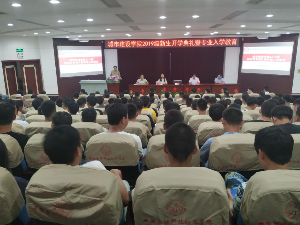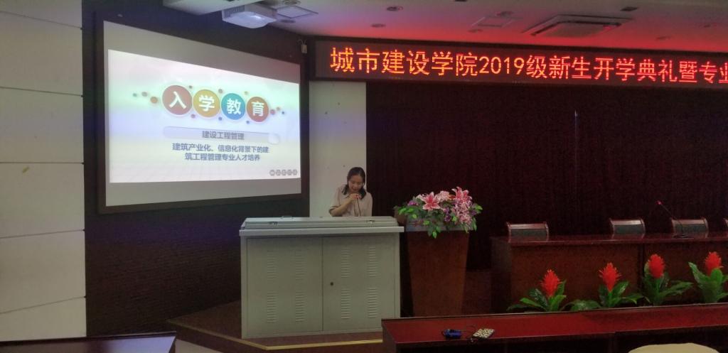 本网讯 金秋送爽,秋天也是代表硕果累累的季节,在这样的一个富含收获意义的日子里,城市建设学院于9月12日在图书馆报告厅举办2019级新生开学典礼暨专业入学教育讲座。院长张显国、党支部副书记叶启衡、副院长王红林、办公室主任黄波、团总支书记张凤、新生班主任及辅导员参加此次典礼。