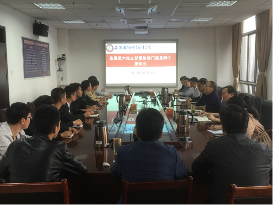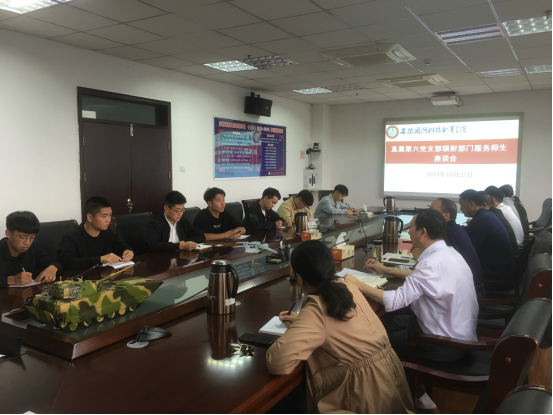 本网讯 (总务处 余嗣俊)为进一步践行“守初心、担使命、找差距、找落实”主题教育的根本要求,抓好服务育人,10月23日下午,直属第六党支部召开辐射部门服务学生座谈会。12名来自各二级学院的学生代表,直属第六支部辐射各部门的主要领导、物业经理、食堂负责人以及相关工作人员参加座谈会。